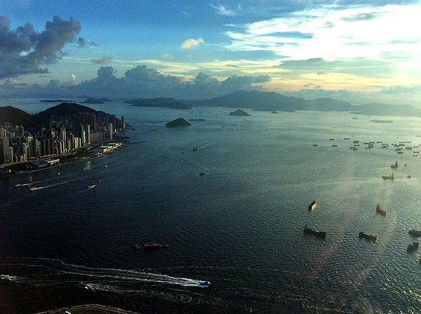 夜景ももちろん良かったのですが、それより、夕暮れに見渡す島々が、なんとも美しく見えました。 ビル群の横目に、はるか遠くまで見渡せる海が、とても印象的でした。